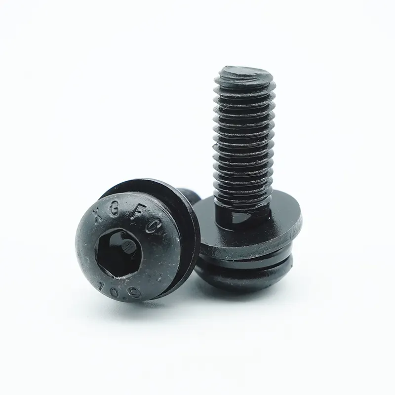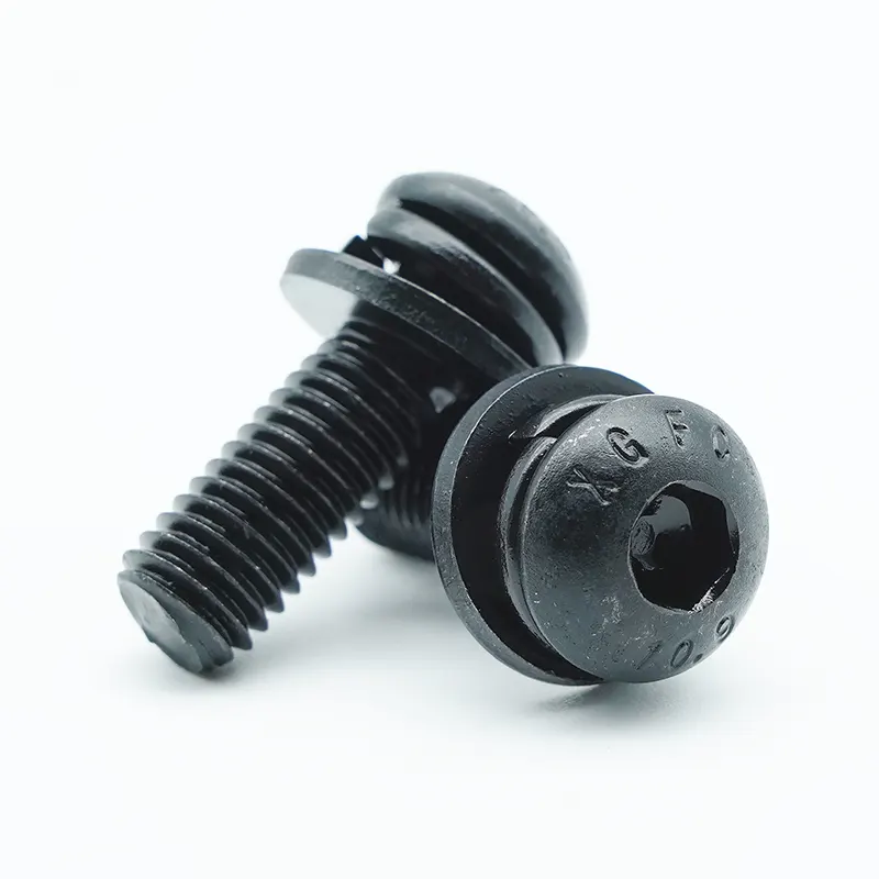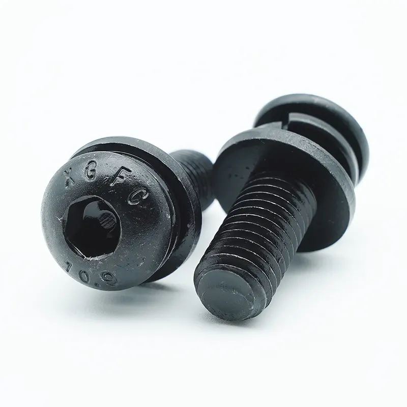 Slovenski Șuruburile combinate cu cap cu oxid de oxid negru al lui Jinsixi sunt asamblate din fabrică cu șuruburi, șaibe plate și șaibe de arc. Șuruburile asigură forța principală de fixare, șaibele plate sunt situate între suprafața conectorului și șaibele de arc, iar șaibele de arc sunt situate între șaibele plate și capetele de șurub. După asamblare, șaibele nu vor cădea ușor de pe șuruburi, ceea ce face ușor transportul, depozitarea și utilizarea, economisind în același timp mult timp și efort de asamblare.